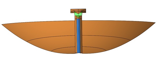 CHAMP 3.0 supports design and analysis of feed + dielectrically supported subreflector + main reflector. The combined usage of the MM-MOM scheme ensures that all RF effects are accounted for when optimizing compact antenna terminals to fulfil stringent sidelobe specification posed by the operators and ITU.