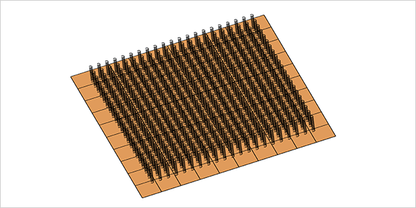 POS comes with efficient algorithms for analysis – and optimisation – of arrays and has several array models that allow the user to quickly define simple or complex arrays. Both dense and sparse arrays are supported, and the elements may be identical or unique. It is also possible to use array elements modelled in CHAMP 3D or ESTEAM in the array – and perform simultaneous optimisation of the elements and excitation coefficients.