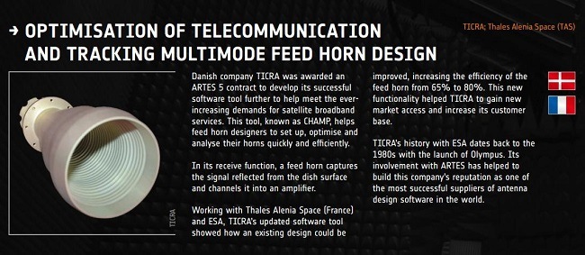 See how TICRA contribute to the strengthening of Europe’s position in the global satcom market. ESA publish a brochure on Satcom product and technologies that are developed under the ARTES program. Through the Danish engagement in ARTES it is possible for TICRA to participate in the competitive bidding for these projects, and we have recently completed two such studies. See the full brochure for more information.