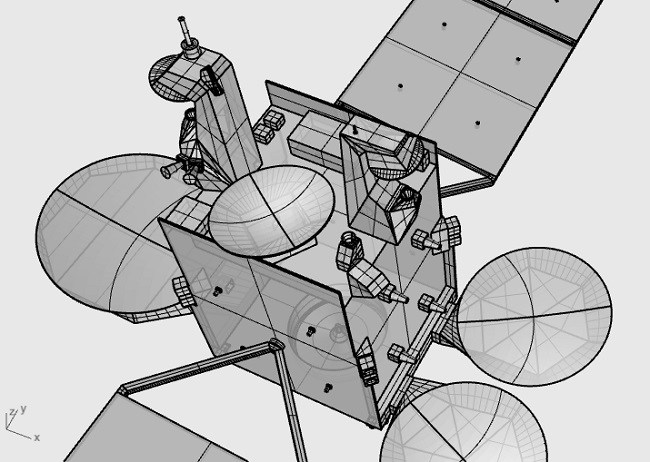 The satellite model shown above, kindly provided by M. Sabbadini, ESTEC, clearly illustrates the commonly encountered problem when designing telecommunications antennas: a multitude of antennas, cramped onto a platform that leaves little room for the individual patterns to radiate without some interaction with the other antennas. Today the antennas are designed, developed and validated based on their isolated performance, and the interaction analysis can only be performed in GRASP using a simplistic model of the platform. Consequently, the antenna designer needs to combine several additional tools to thoroughly analyze the antennas in their true environment.