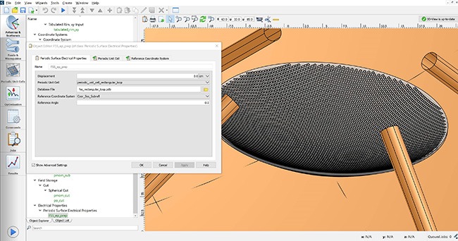 Users of both GRASP and QUPES can benefit from the possibility to create an object of the class “Periodic Surface Electrical Properties” defined from any available Periodic Unit Cells in QUPES. It offers the user a convenient way of applying the electrical properties of a periodic cell directly to the antenna surface, for example Frequency Selective Surfaces (FSS) subreflector designs, mesh reflectors, beam waveguides, quasi-optical networks and more. In this way, the entire analysis and design can be done within the TICRA Tools framework.